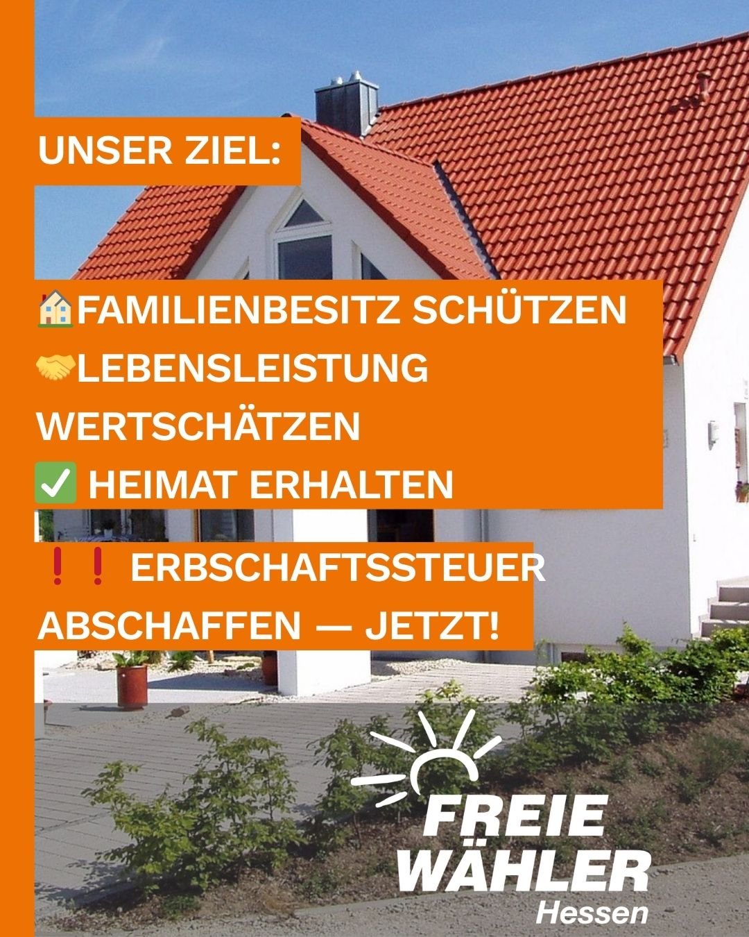 FREIE WÄHLER sagen klar: Erbschaftssteuer abschaffen. Familienbesitz schützen. Bezahlbares Wohnen erhalten. Mittelstand schützen.